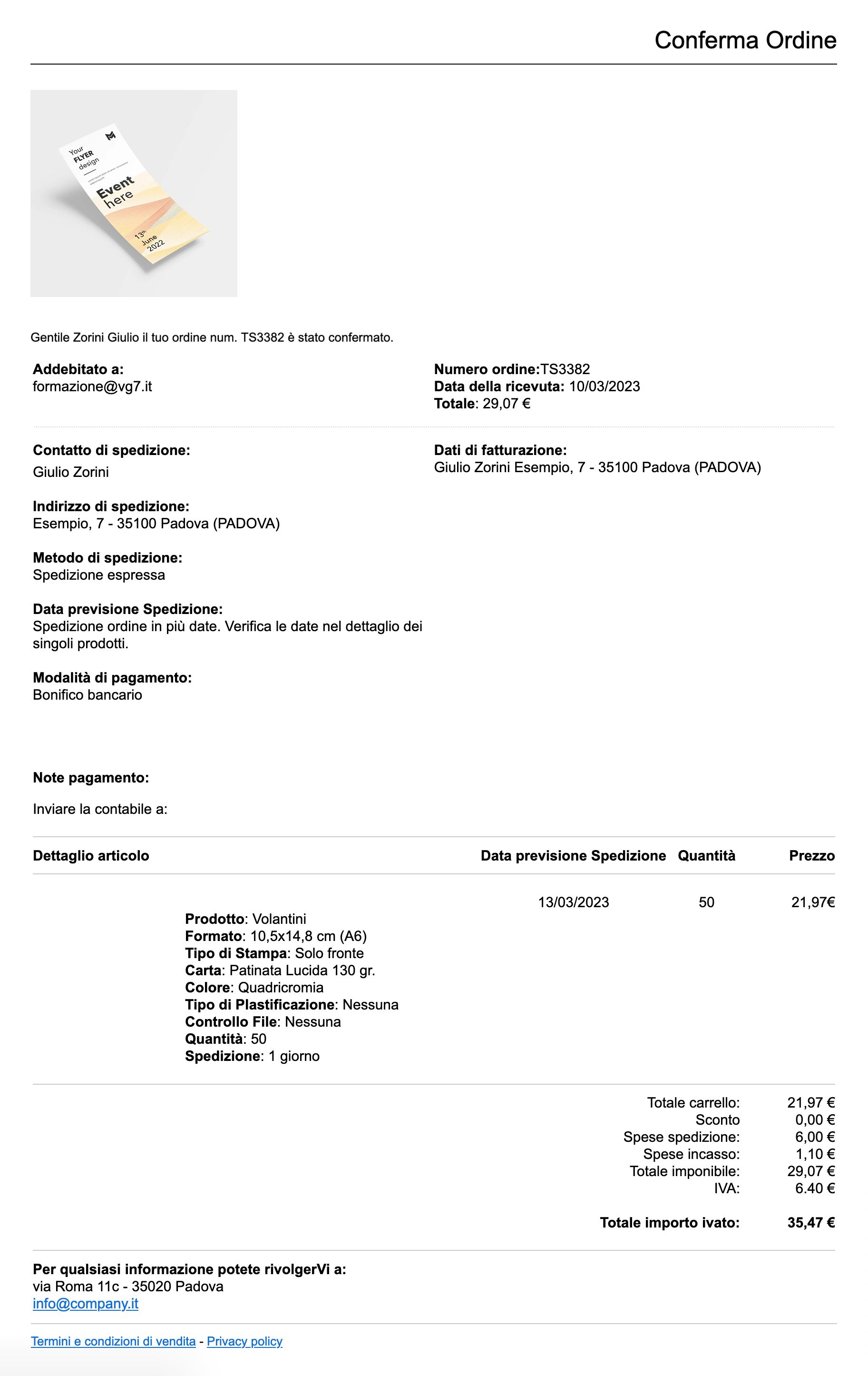Clienti e fornitori saranno sempre aggiornati sullo stato dei propri ordini e dei propri pagamenti. Potranno avere conferma per registrazione al sito web, ordine, feedback sul controllo dei file grafici, tracking del pacco o prodotto pronto al ritiro.